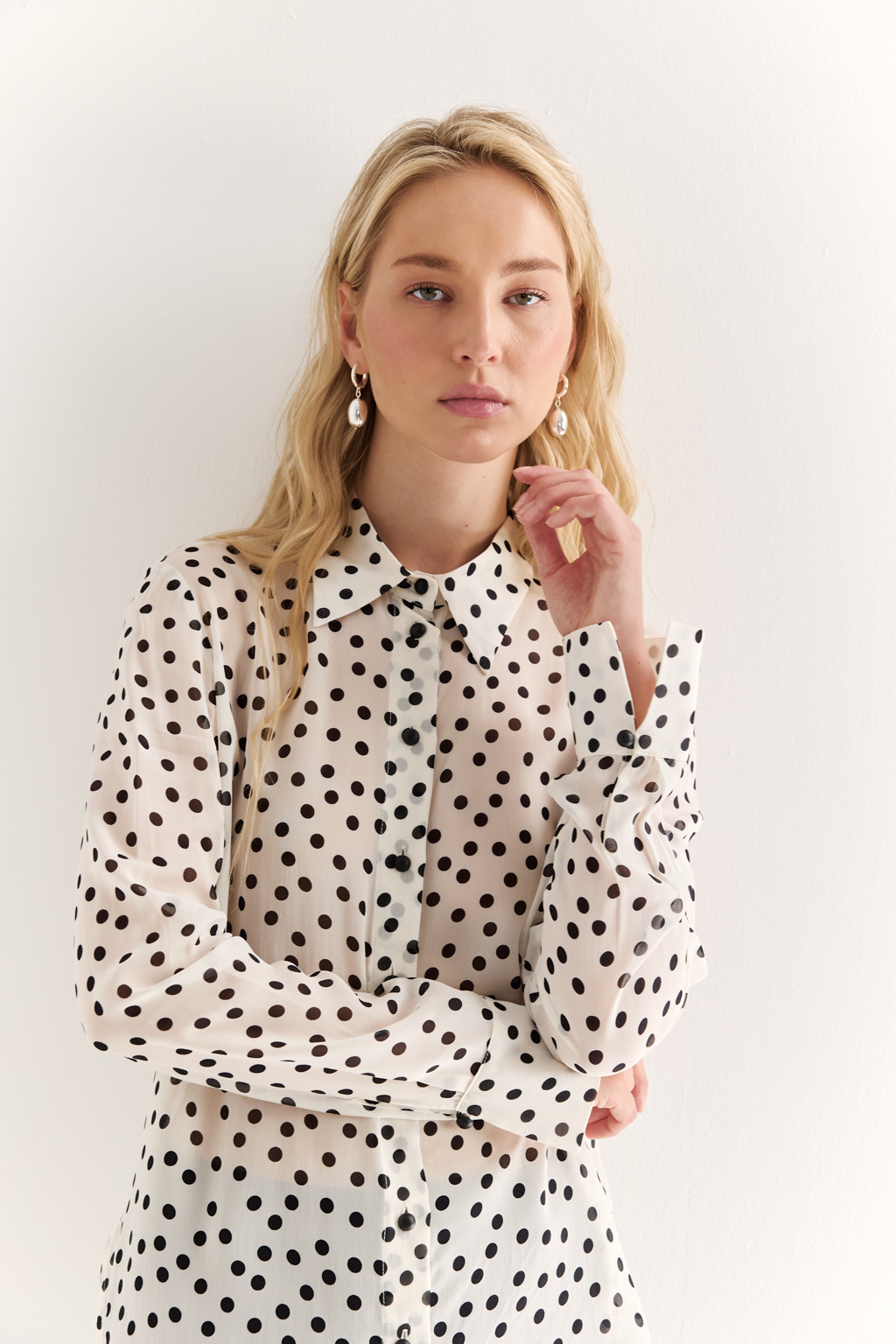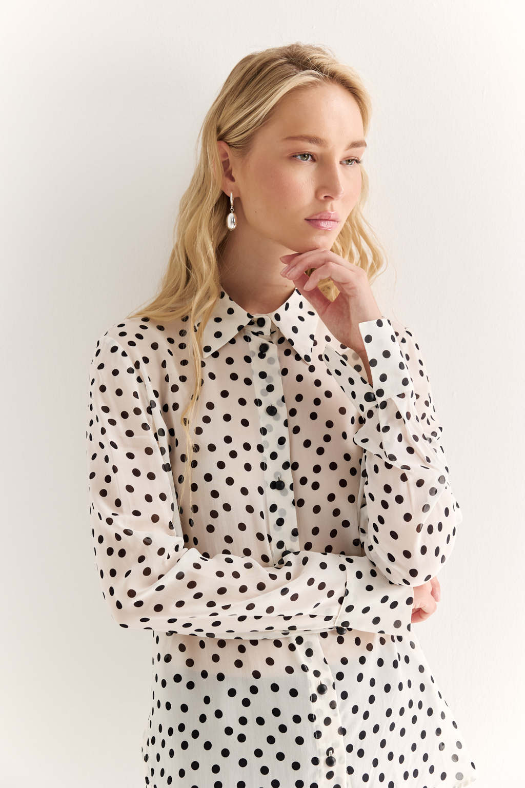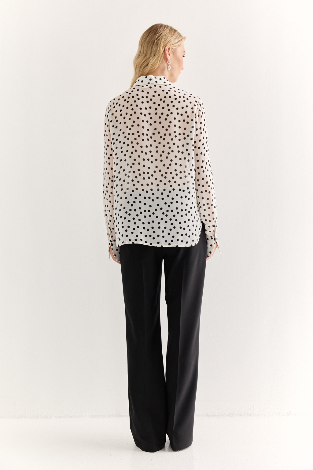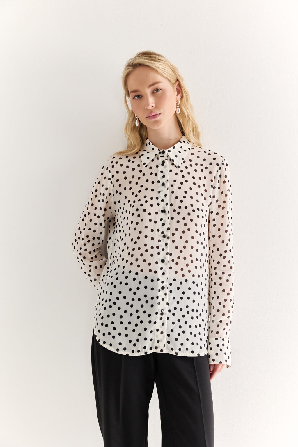 NEW, PREMIUM QUALITY Вискозный шифон крепового переплетения в черный горошек на молочном фоне