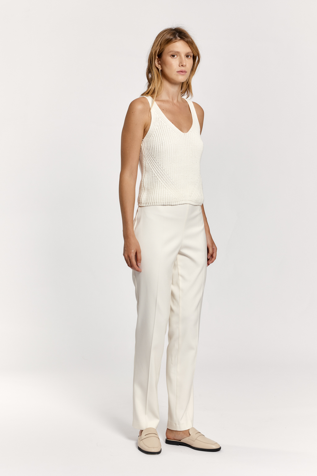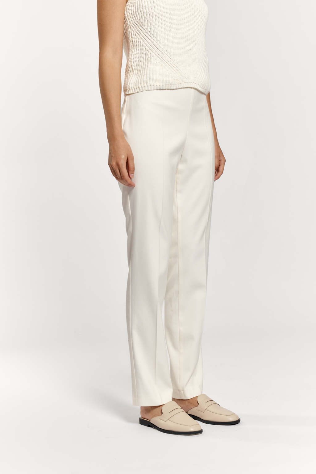 Брюки прямого силуэта стандартной длины с застежкой на молнию сбоку.
