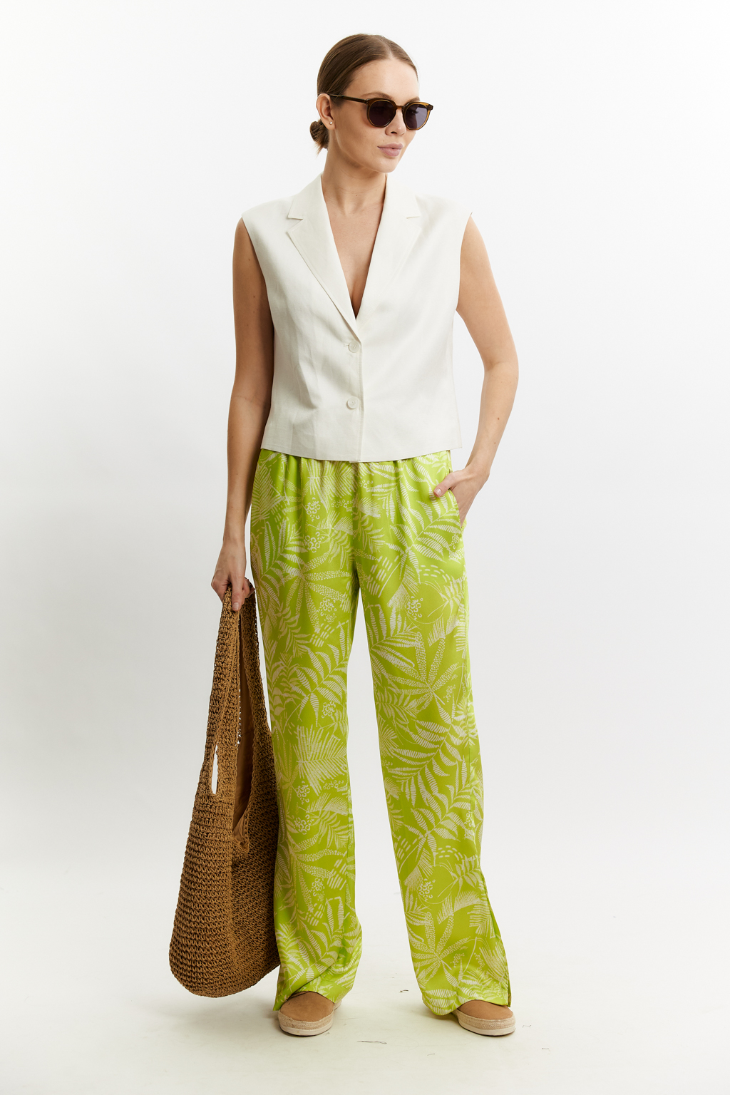 Костюмно плательный твилл "Папоротник" в цвете неон