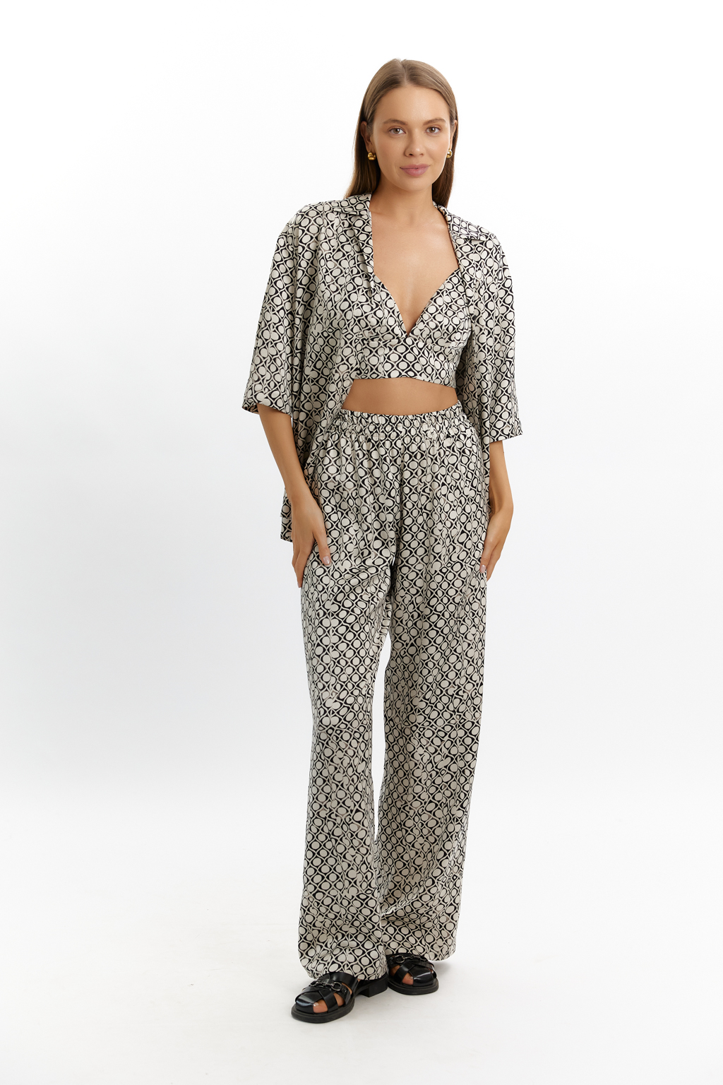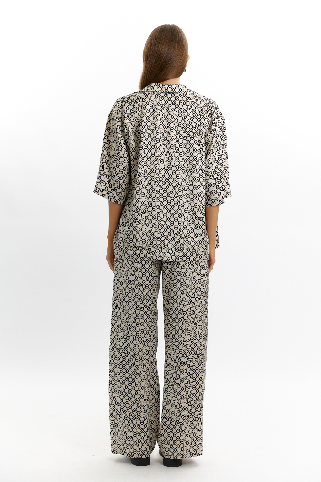 TREND NEW PREMIUM QUALITY Вискоза атласная премиального качества струящаяся с геометричным принтом в графитово-молочной гамме Италия, RATTI