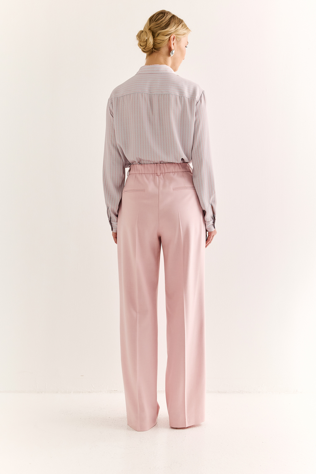 Идеальные брюки на каждый день — и на всю жизнь. Классические брюки прямого кроя с посадкой на талии — основа гардероба современной женщины. Аккуратные стрелки визуально вытягивают силуэт, подчёркивая стройность ног, а высокая посадка акцентирует талию и создаёт элегантный, собранный образ. Модель идеально садится по фигуре благодаря вытачкам и продуманной конструкции пояса. Универсальная длина и лаконичный фасон делают брюки безупречной парой как для делового жакета, так и для расслабленного трикотажа или шелковой блузы. Брюки, которые работают на ваш стиль.