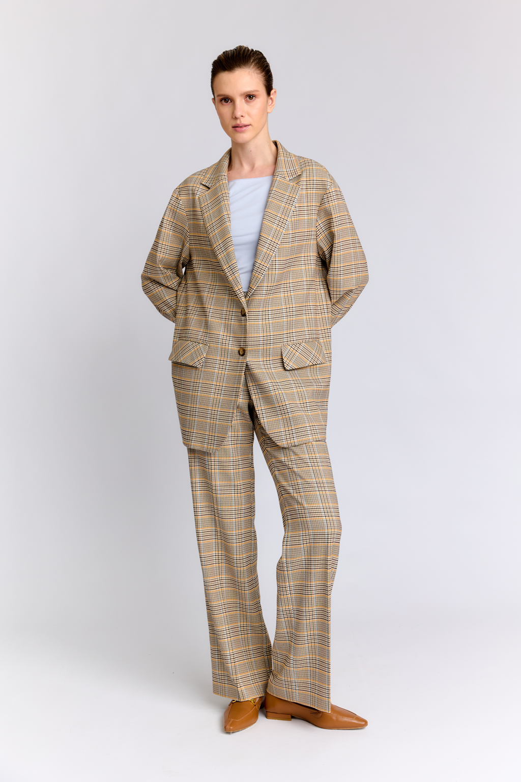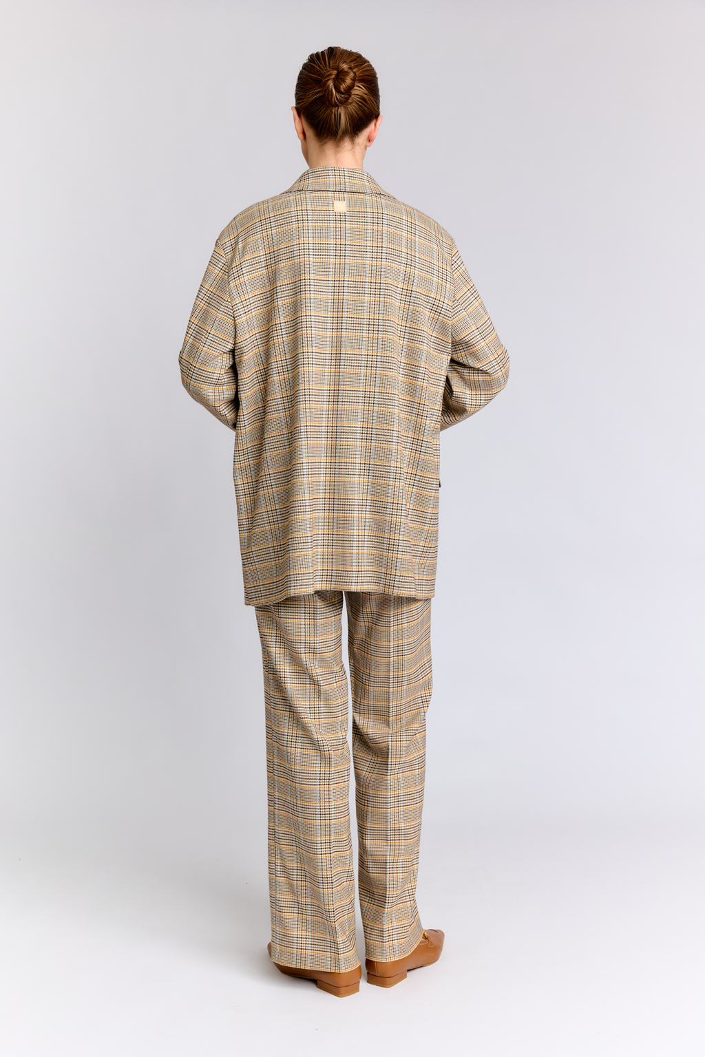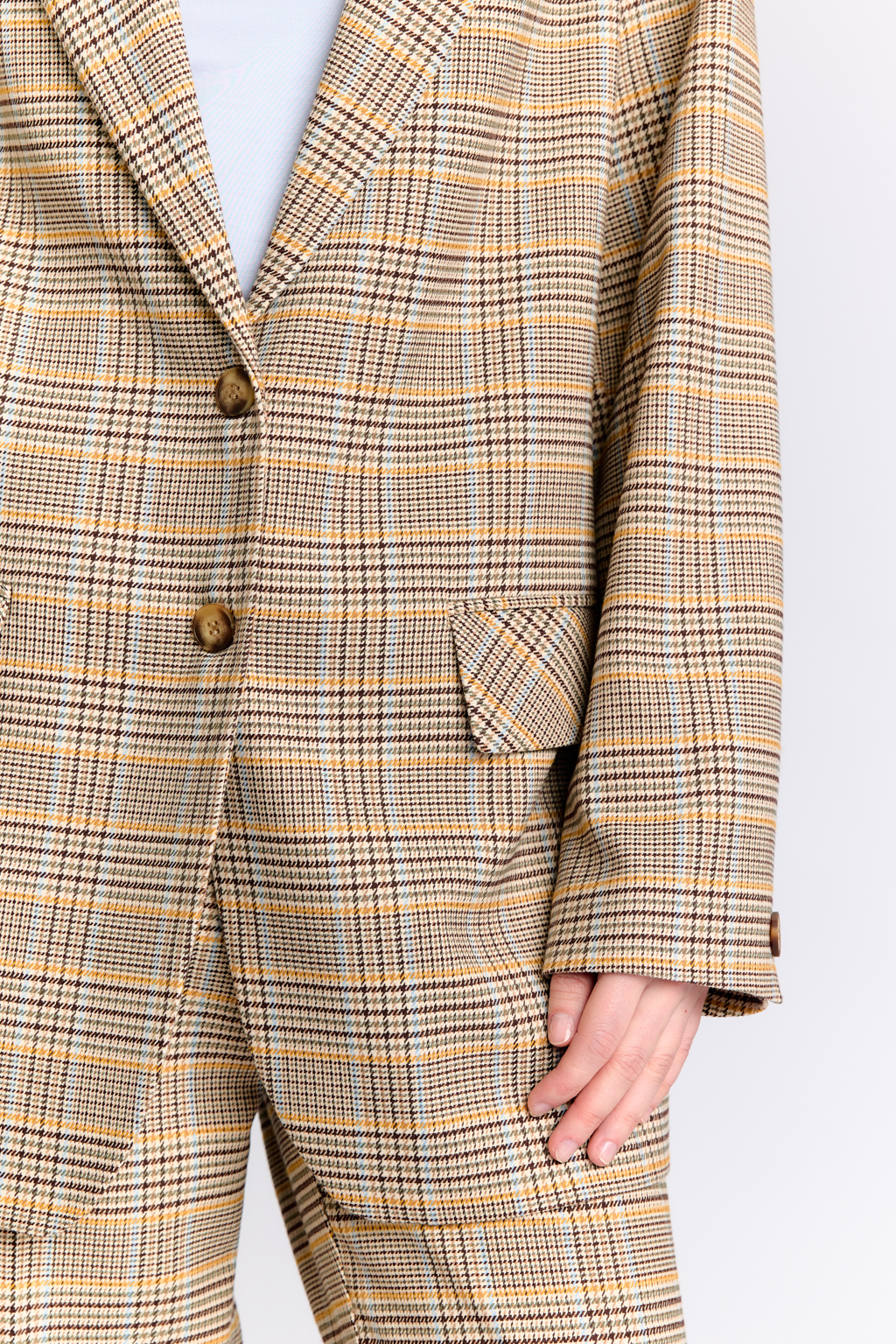 Костюмная ткань в коричнево-горчичную клетку