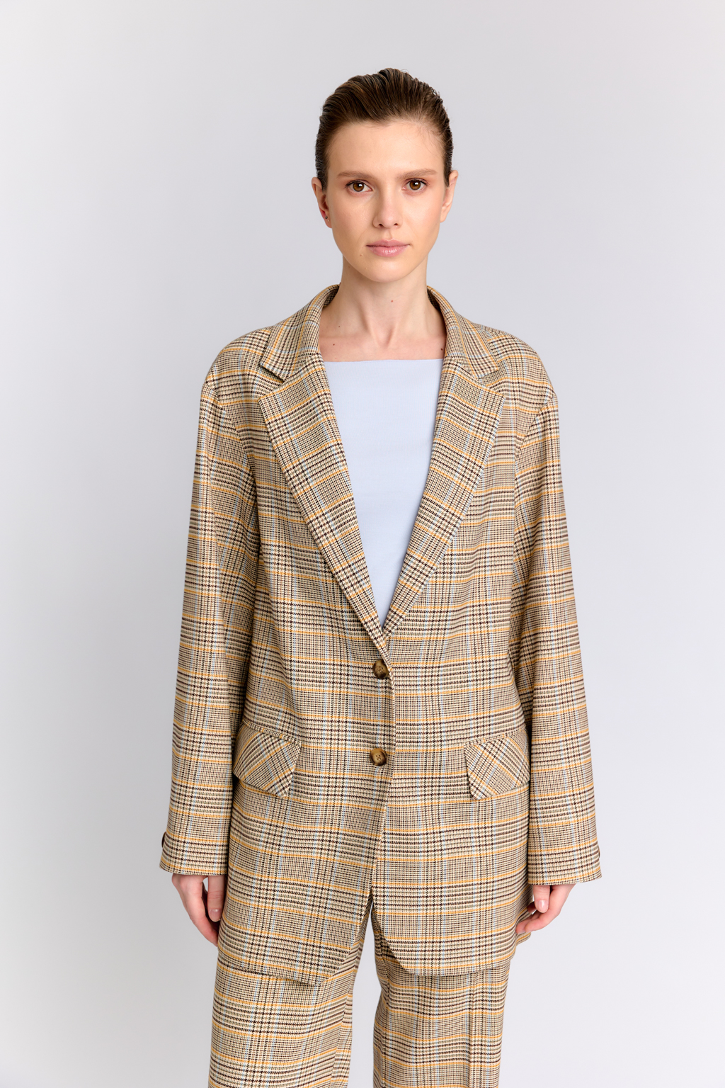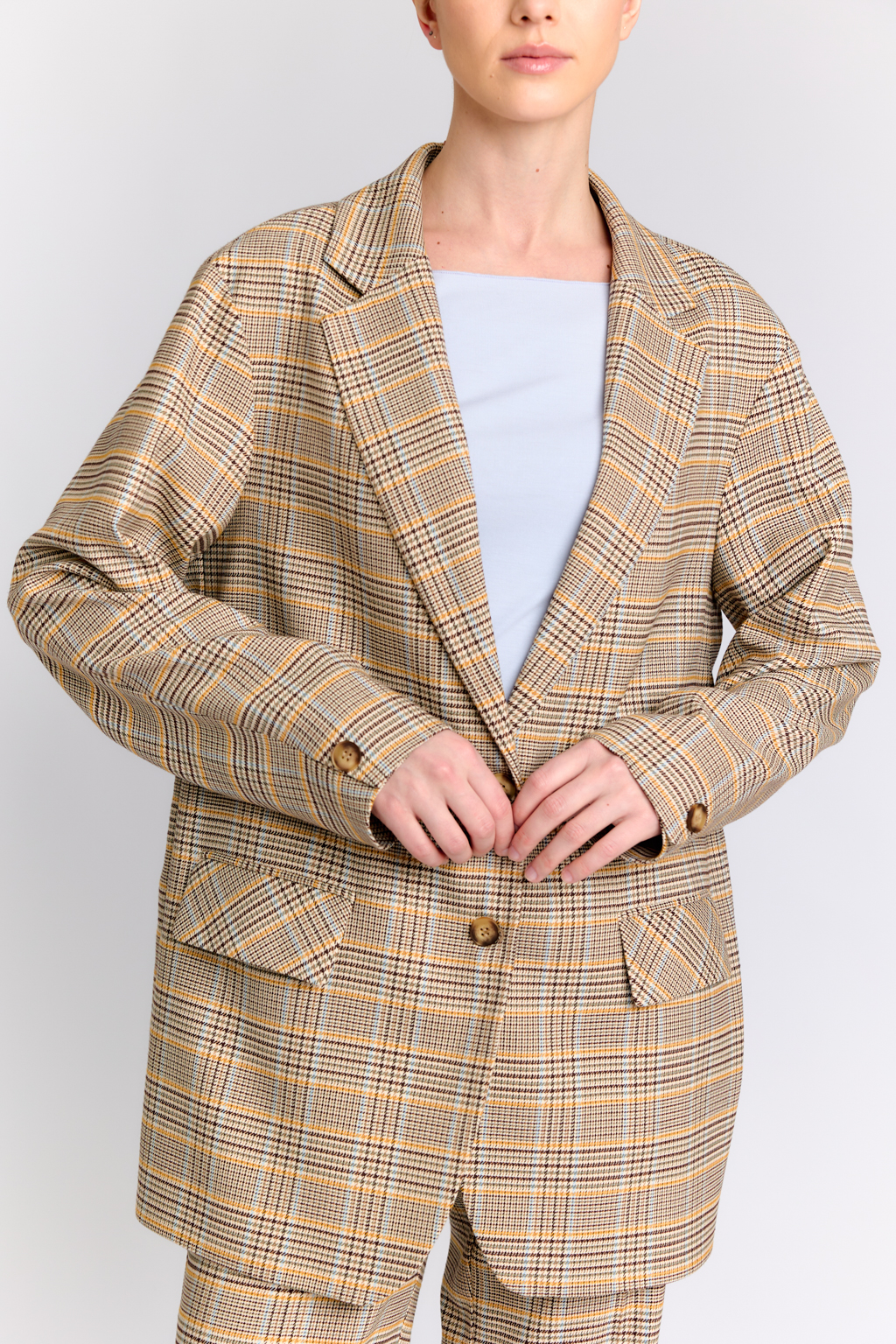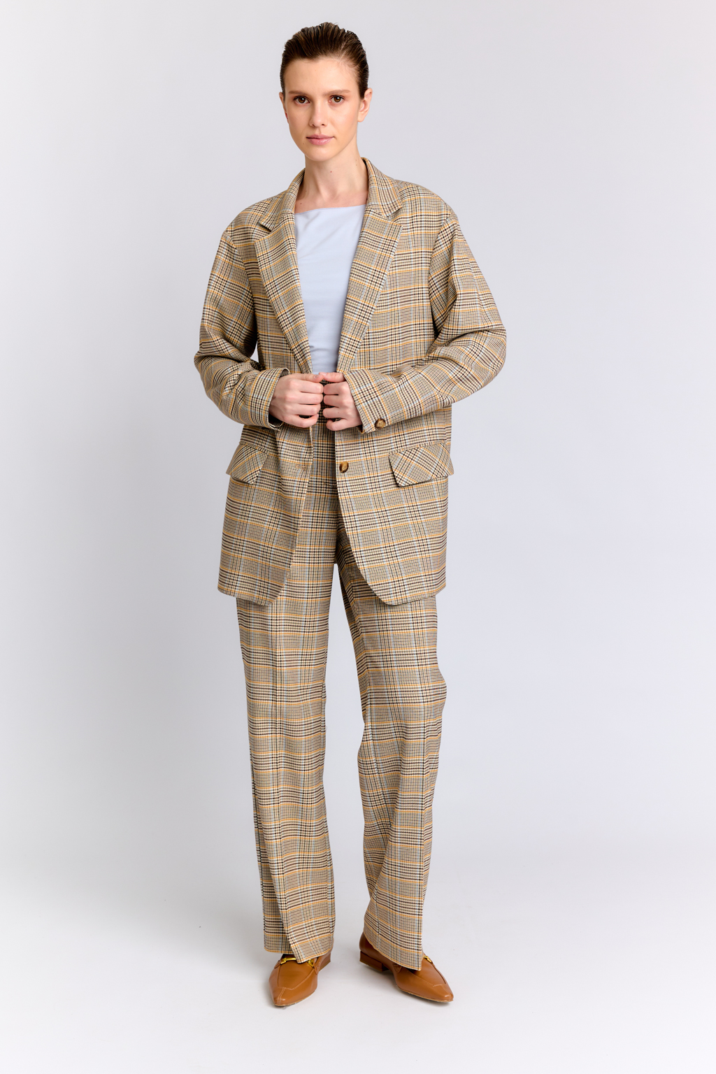 Костюмная ткань в коричнево-горчичную клетку