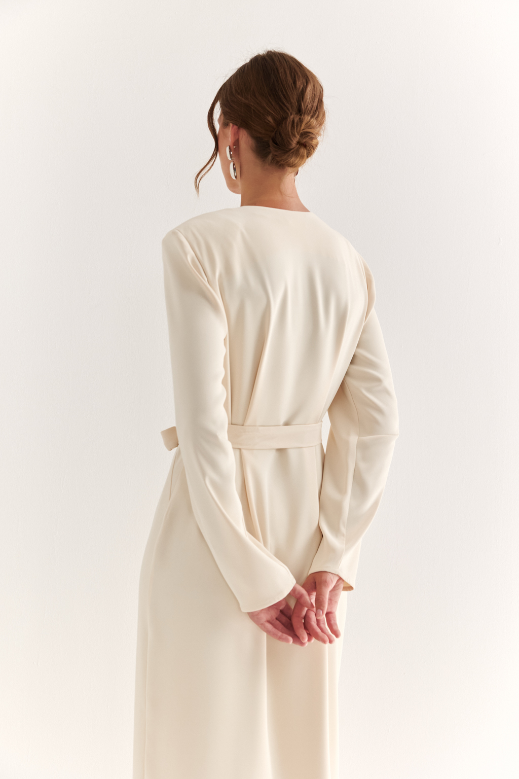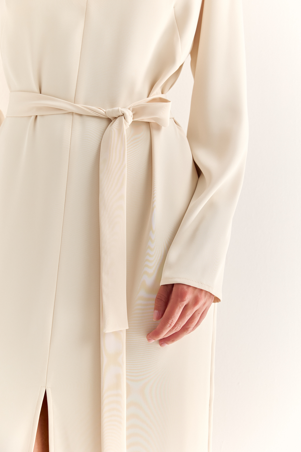 Струящаяся плательная ткань с легким блеском молочного цвета