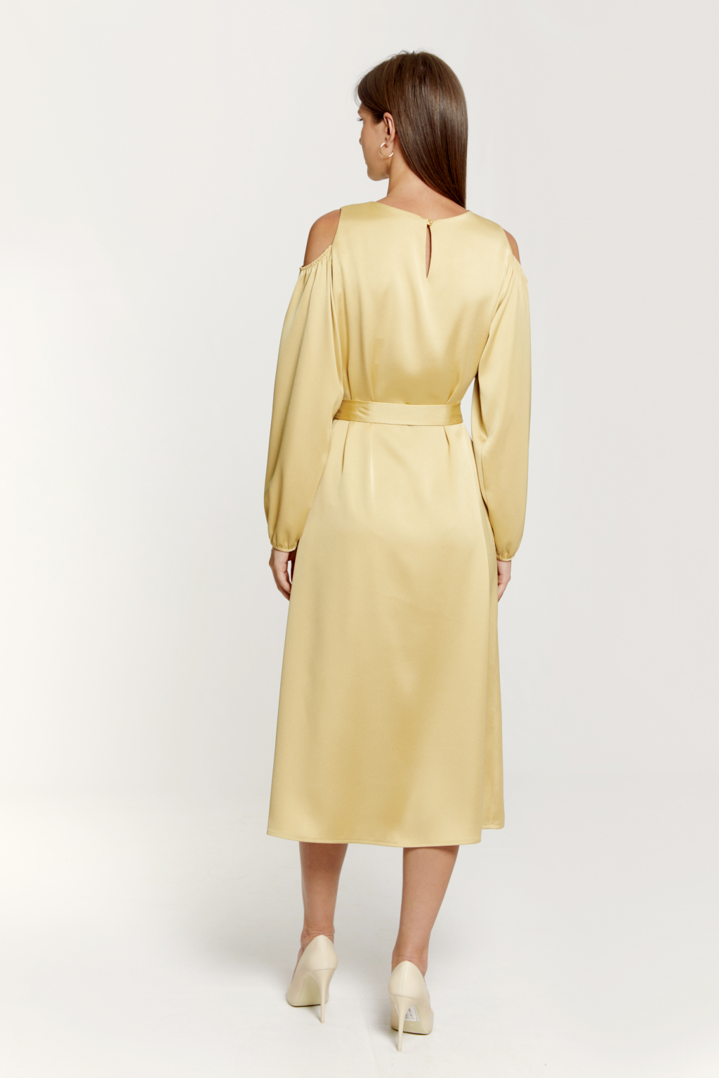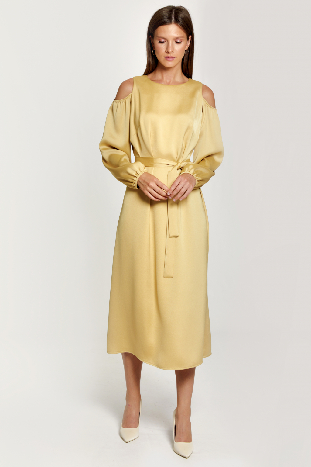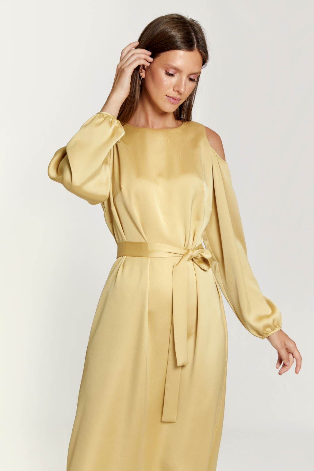 PREMIUM QUALITY Плательная ткань с матовым блеском в диагональ золотистого цвета (100% п.э.)