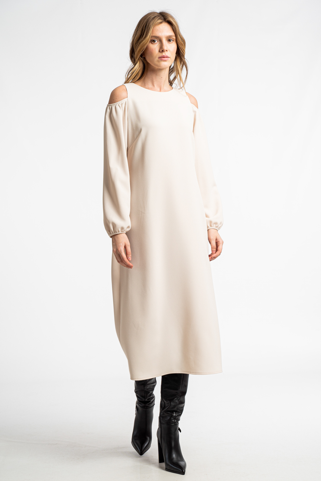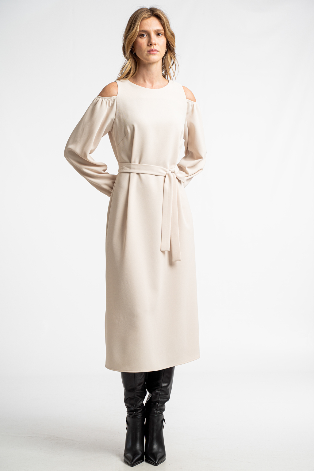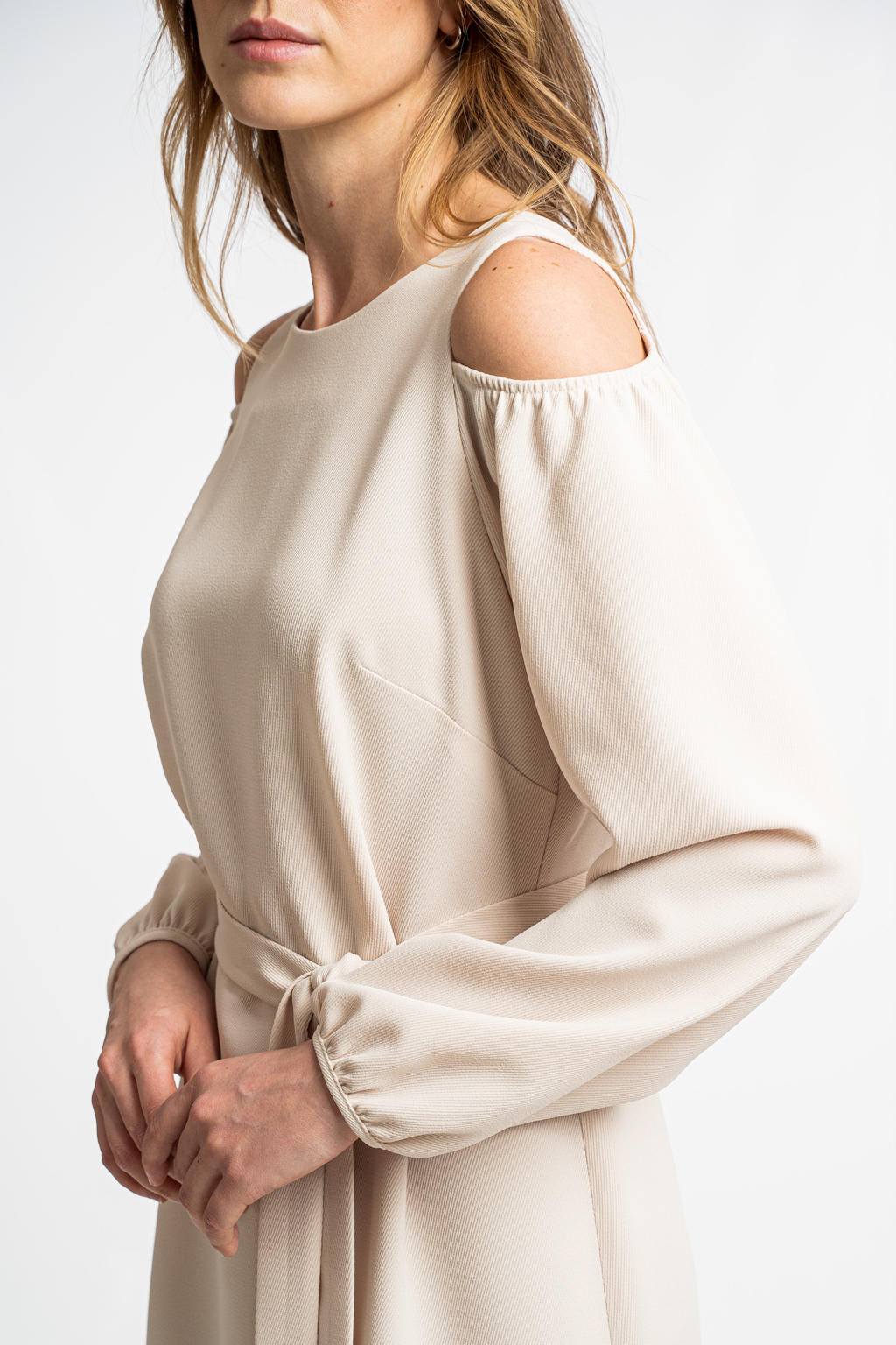 Тонкая костюмная ткань с диагональной выработкой молочного цвета