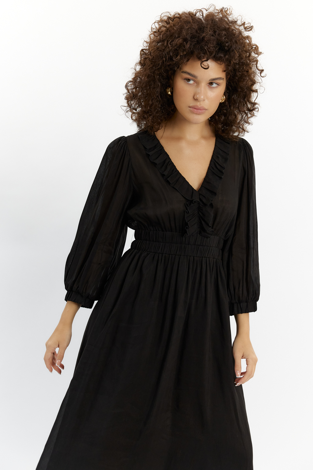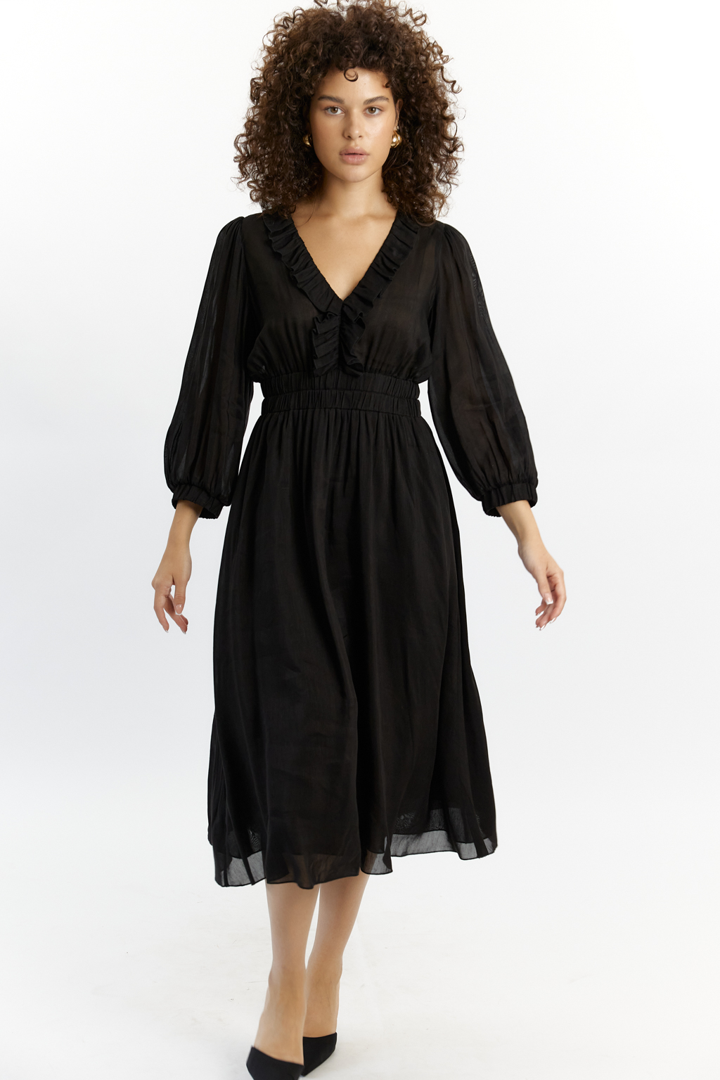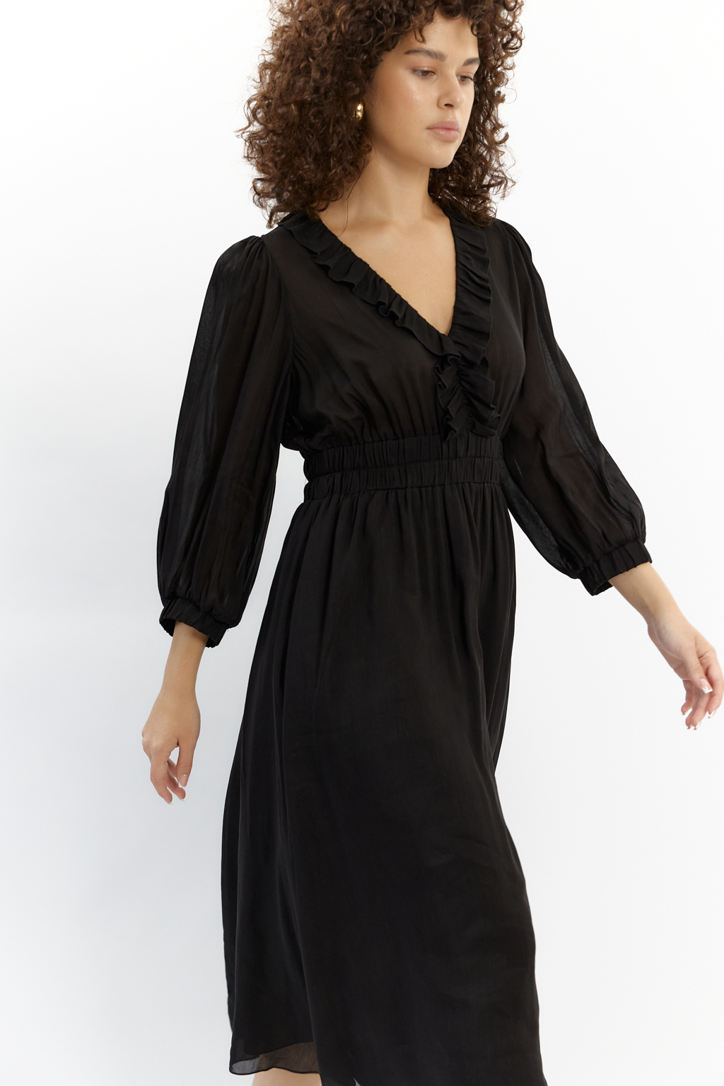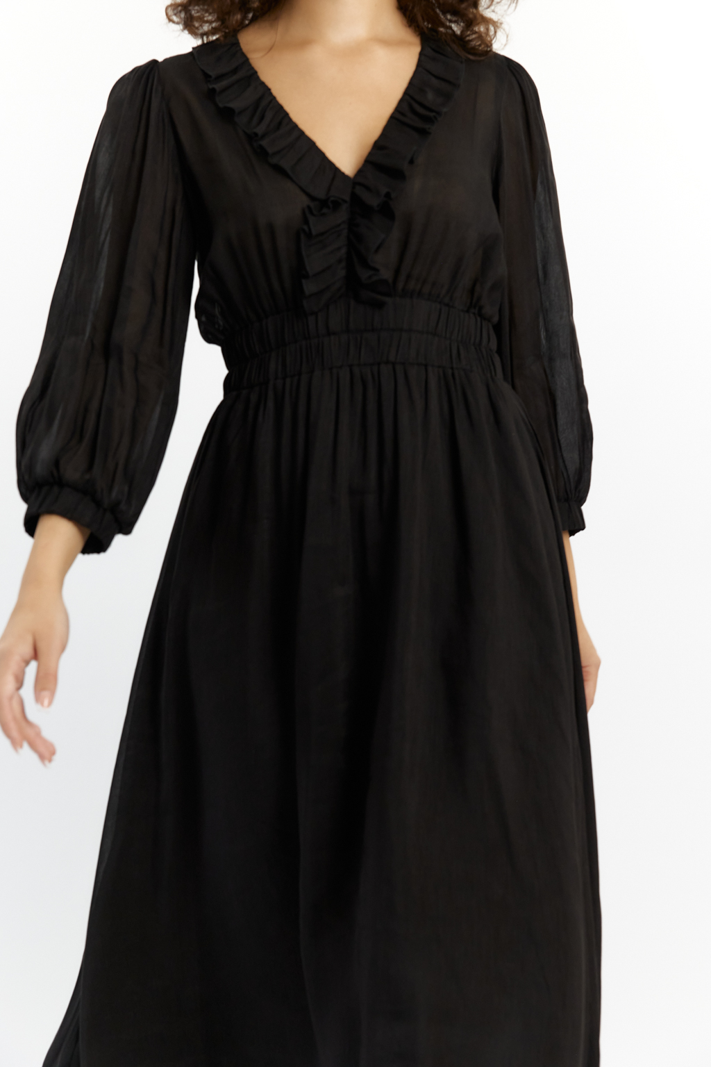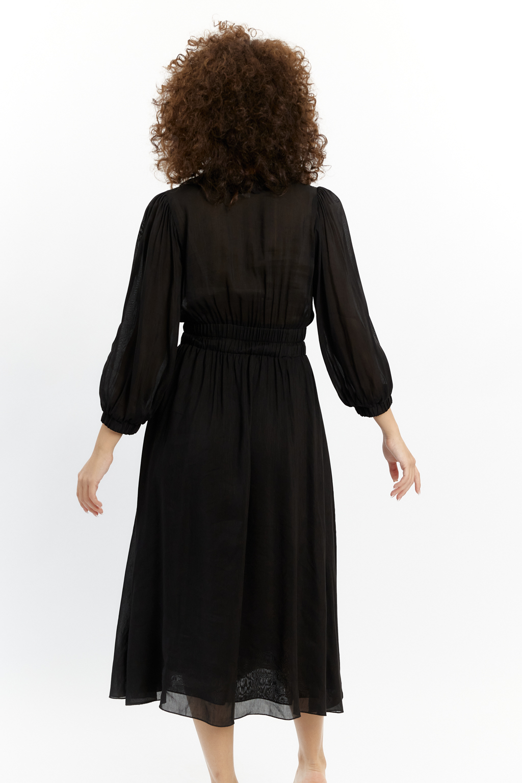 PREMIUM QUALITY/TREND Блузочный виcкозный лен с фактурой под шелк с прозрачным эффектом черного цвета