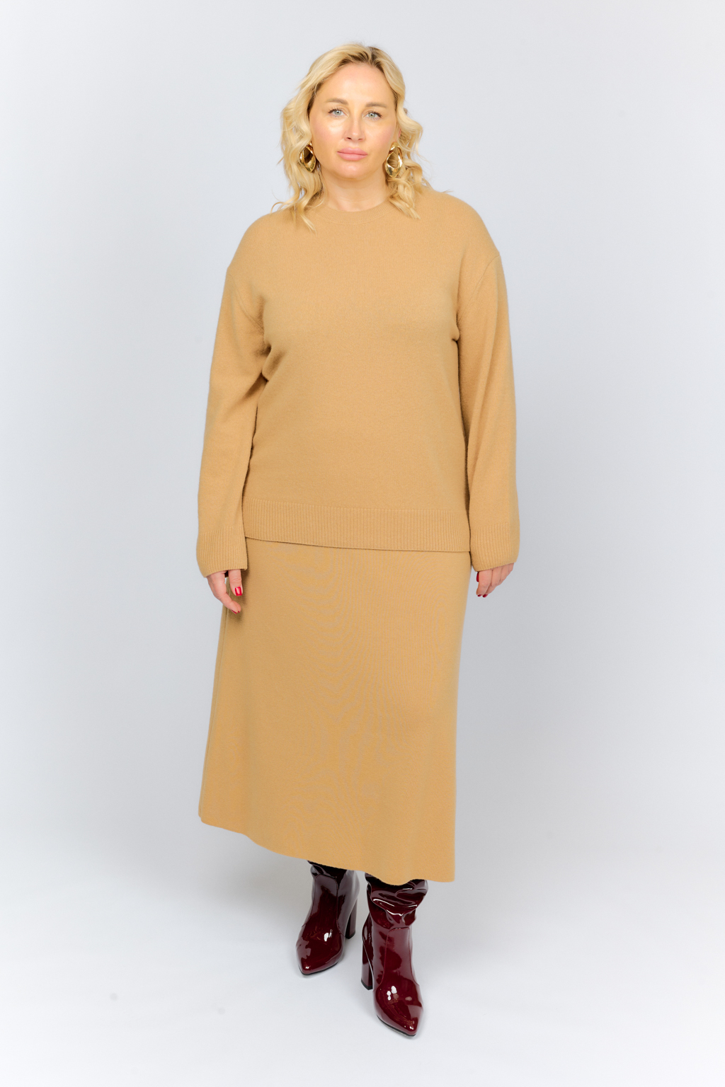 Вязаный трикотаж в цвете кэмел