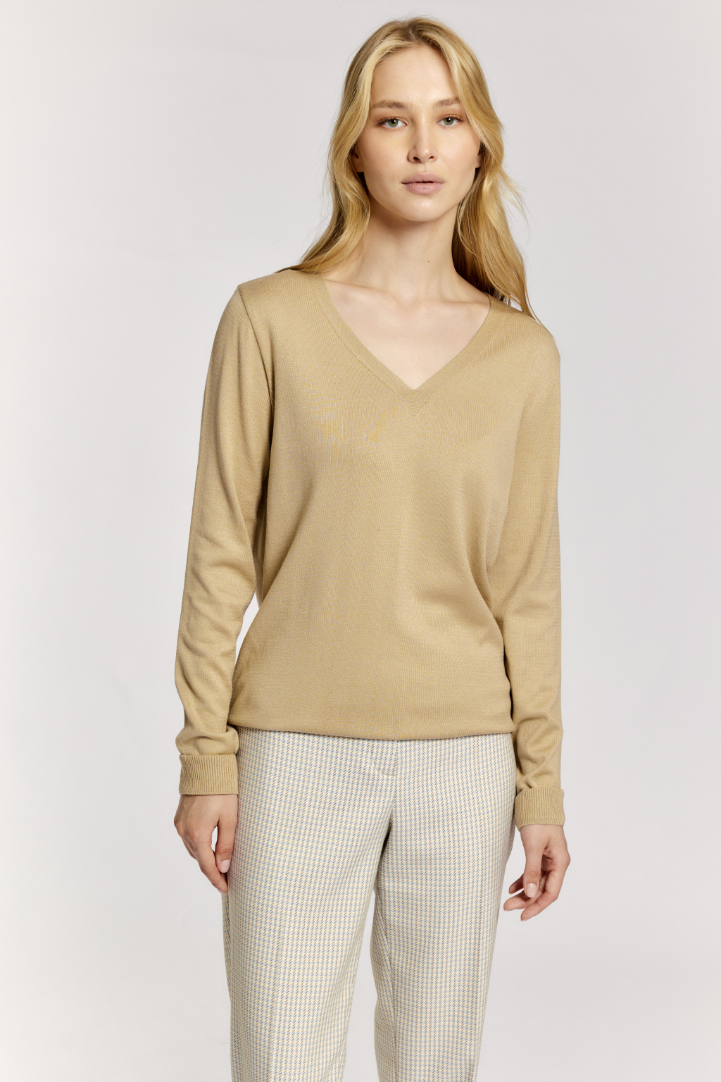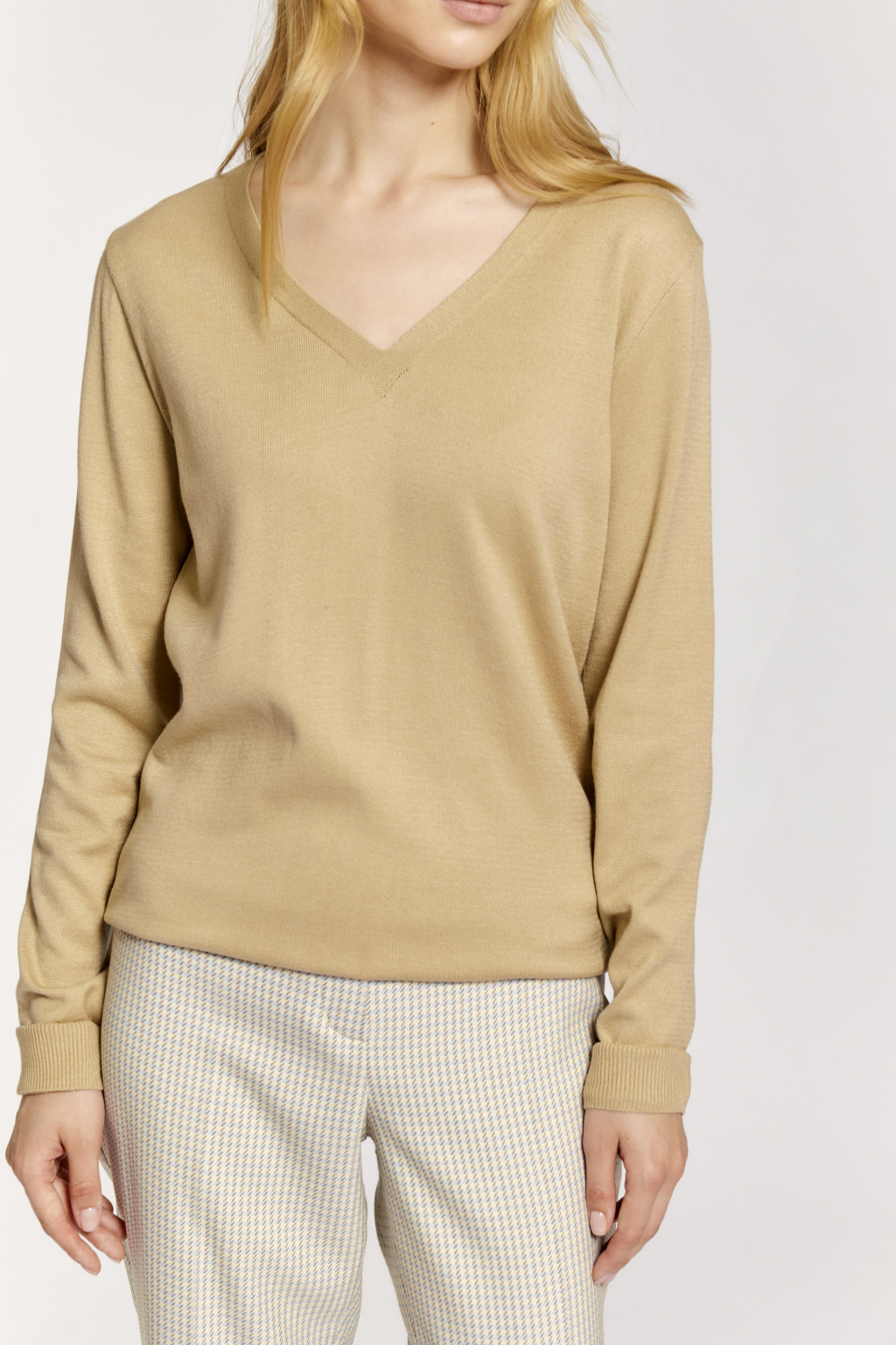 Джемпер с V-образным вырезом и логотипом по низу.