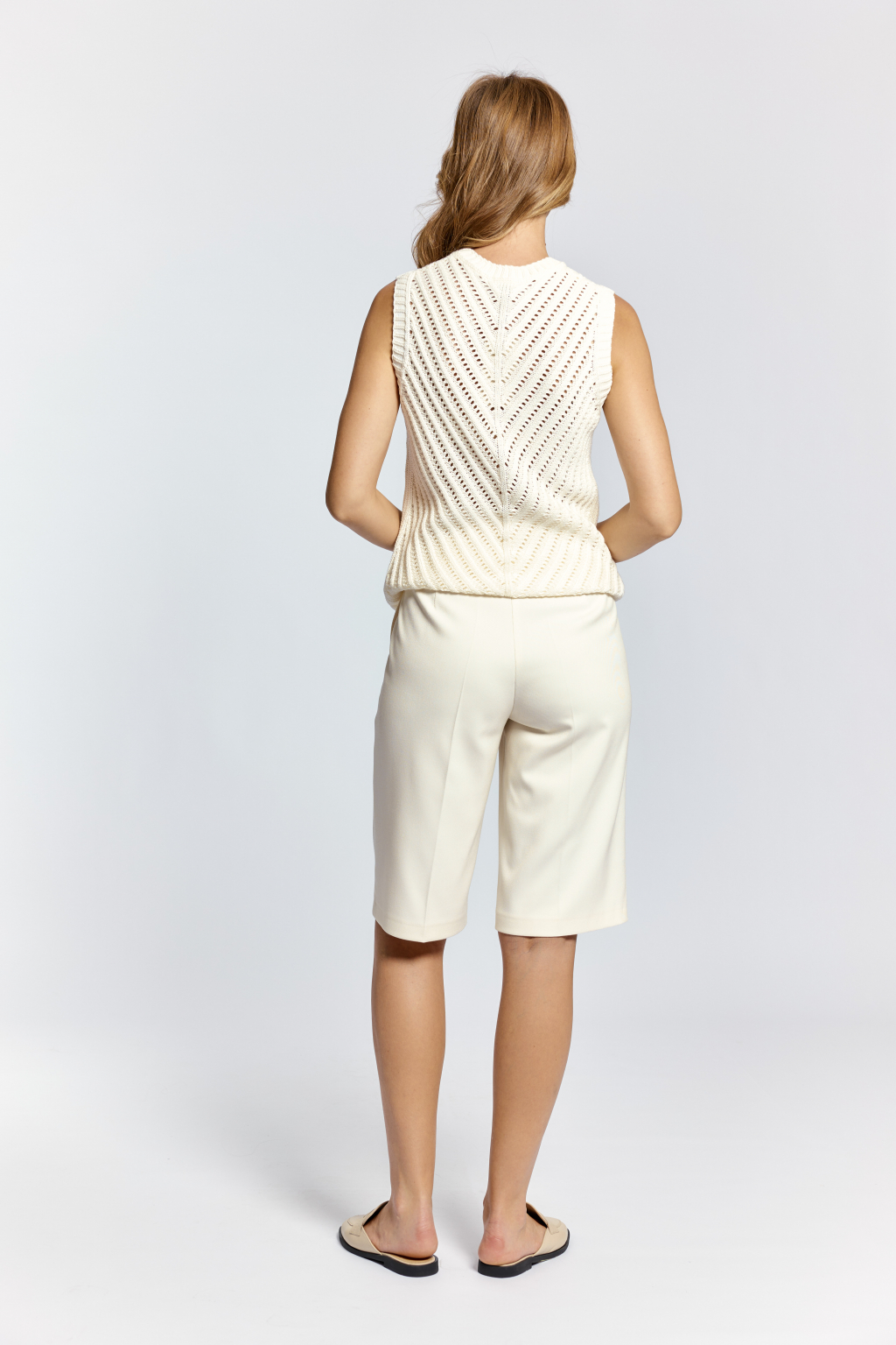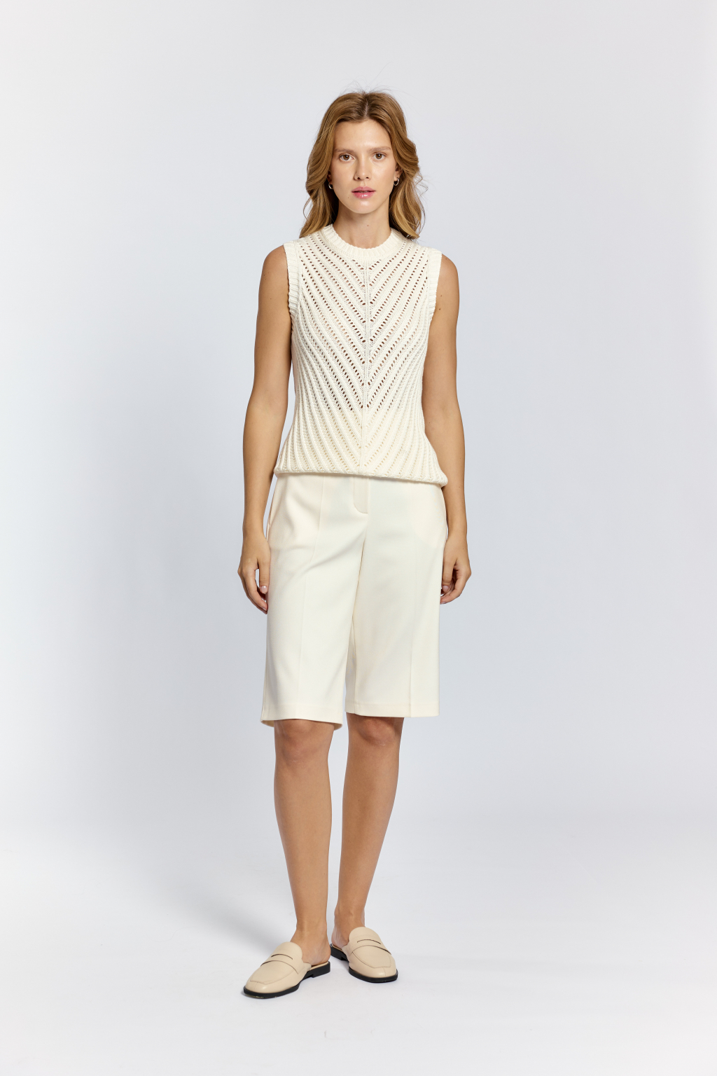 Топ без рукавов фактурной вязкой по полочке и спинке.
