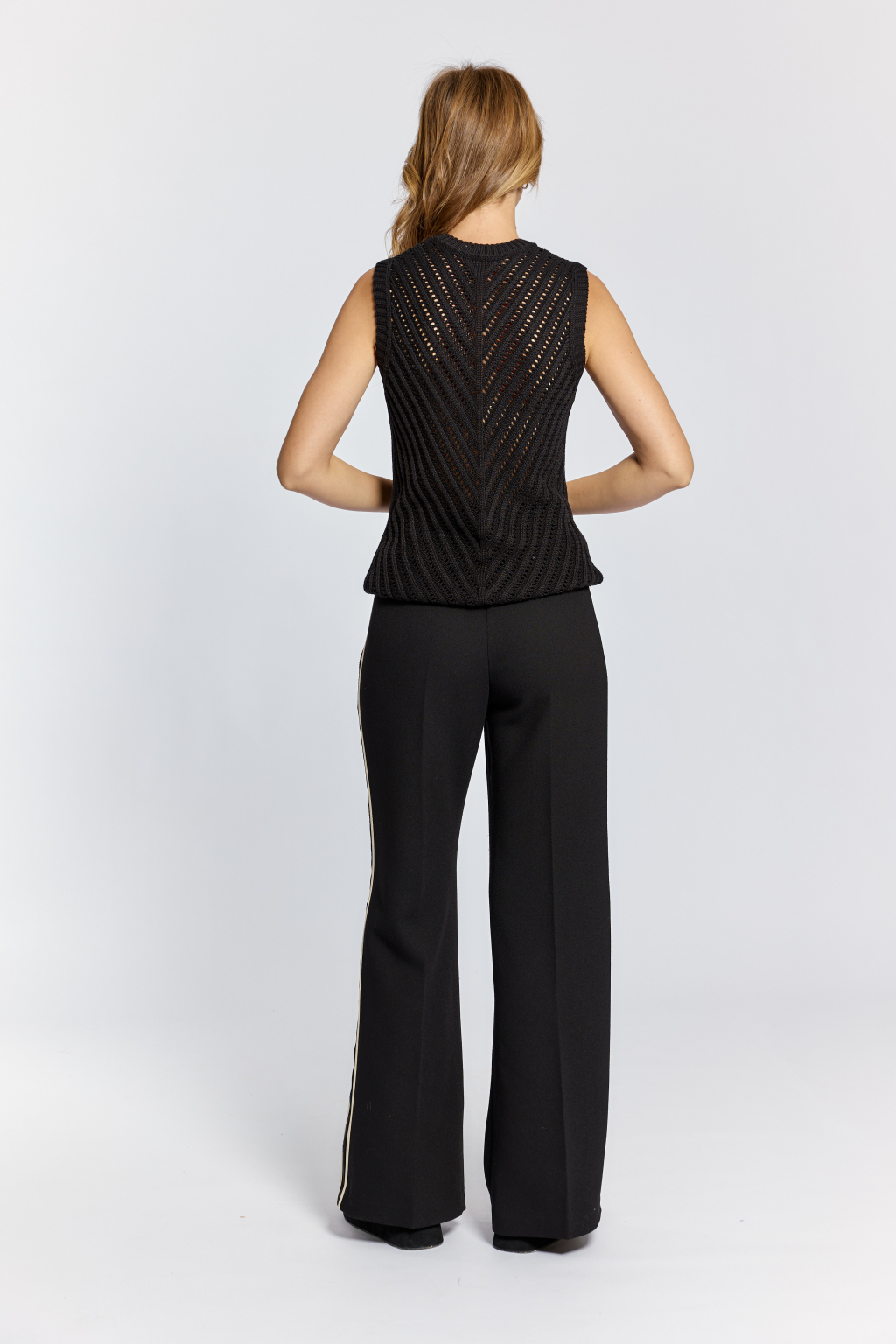 Топ без рукавов фактурной вязкой по полочке и спинке.