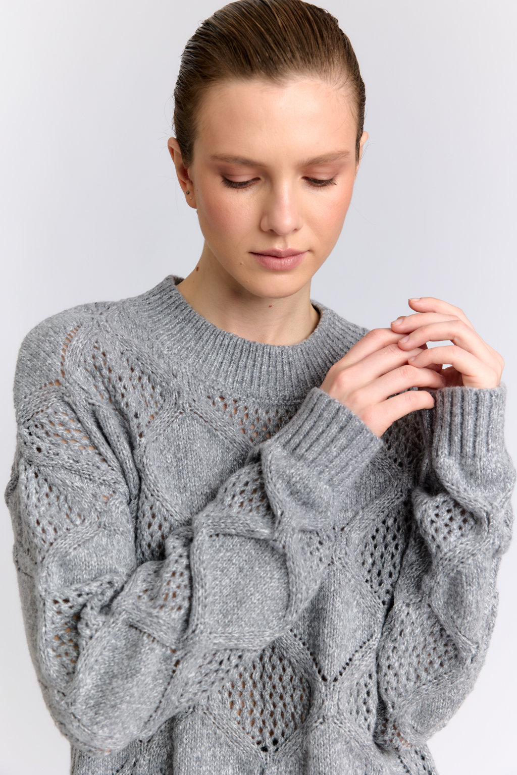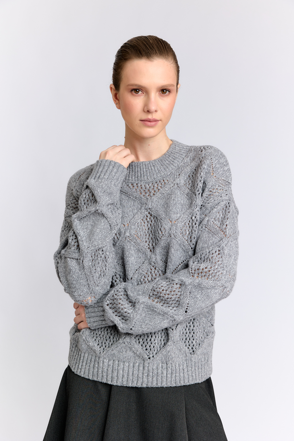 Джемпер с вязкой в сером цвете