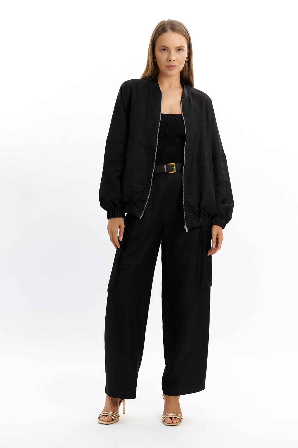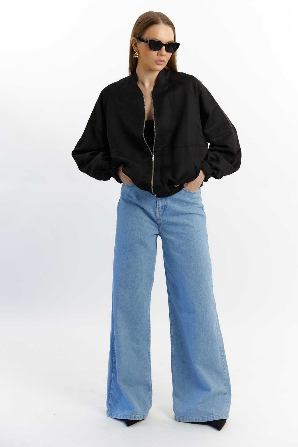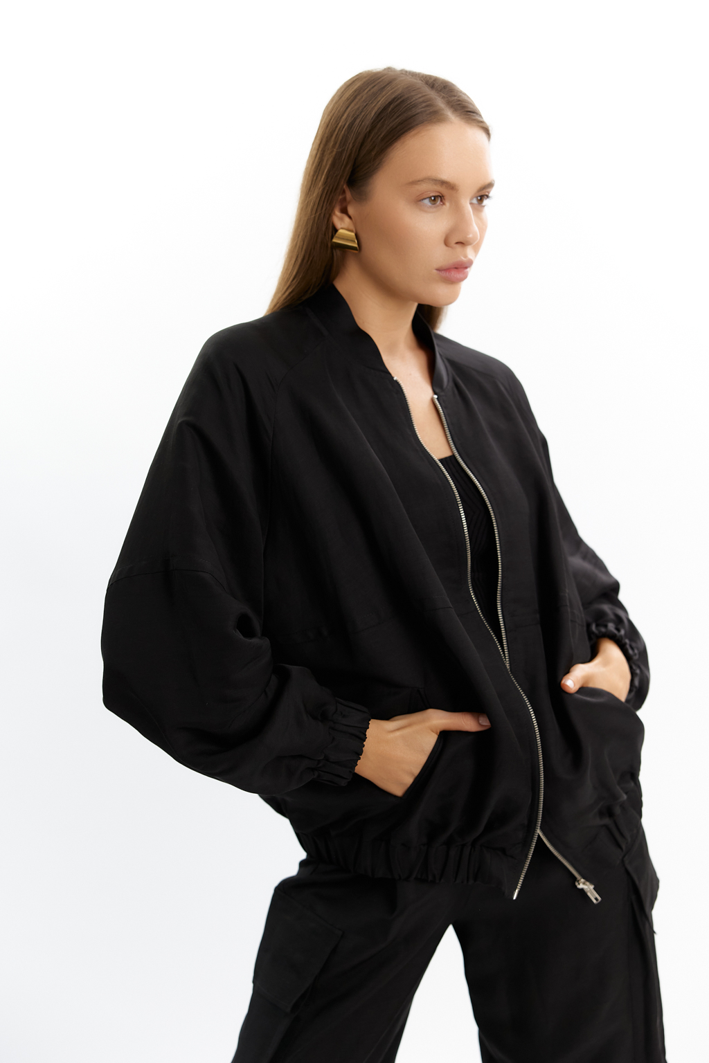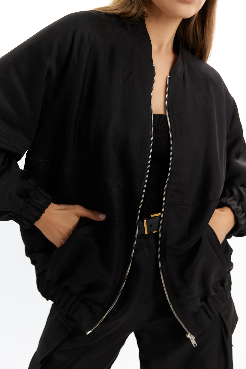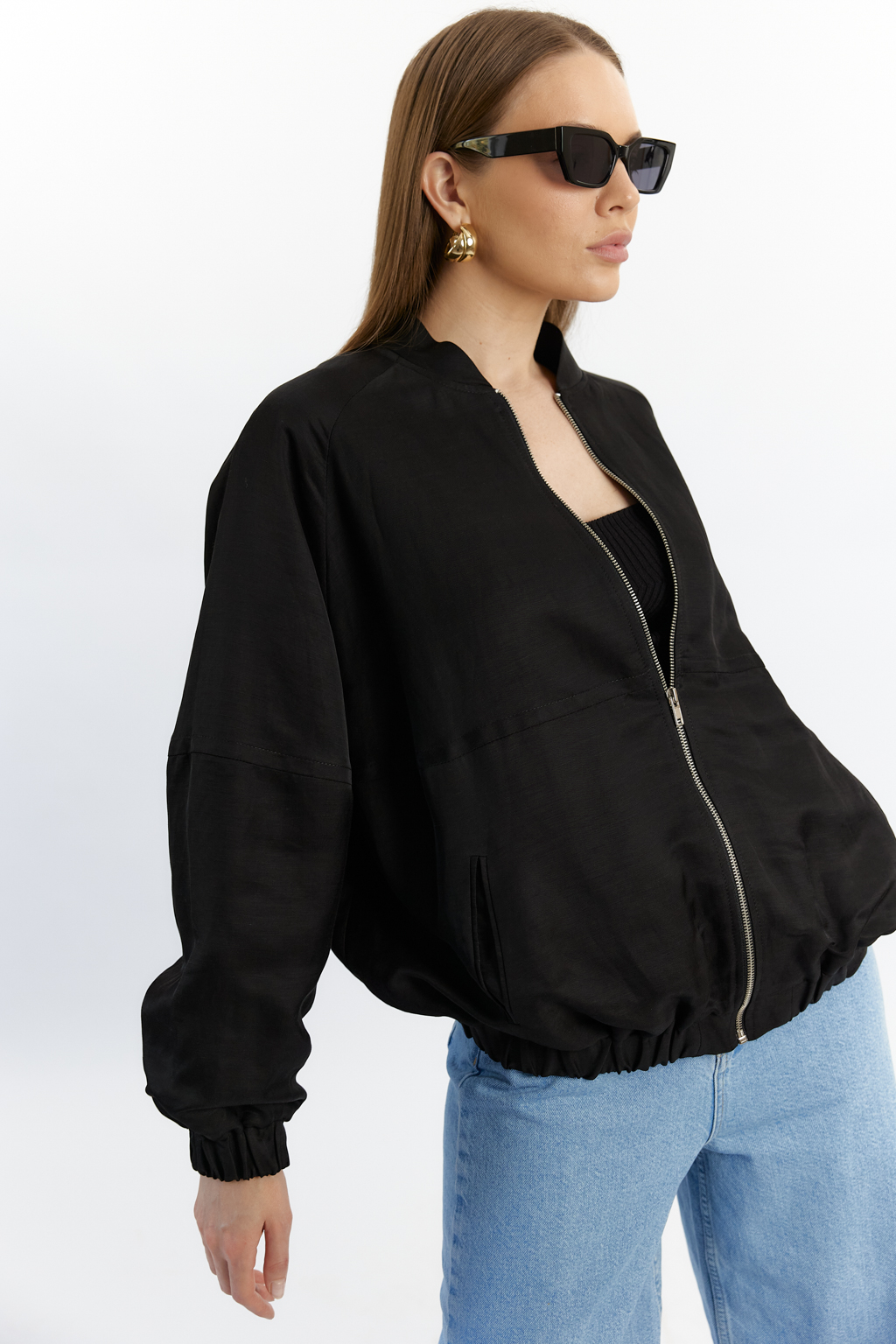 Бомбер оверсайз с резинкой по низу и рукавах. Застежка на молнии. Вышивка на спике.