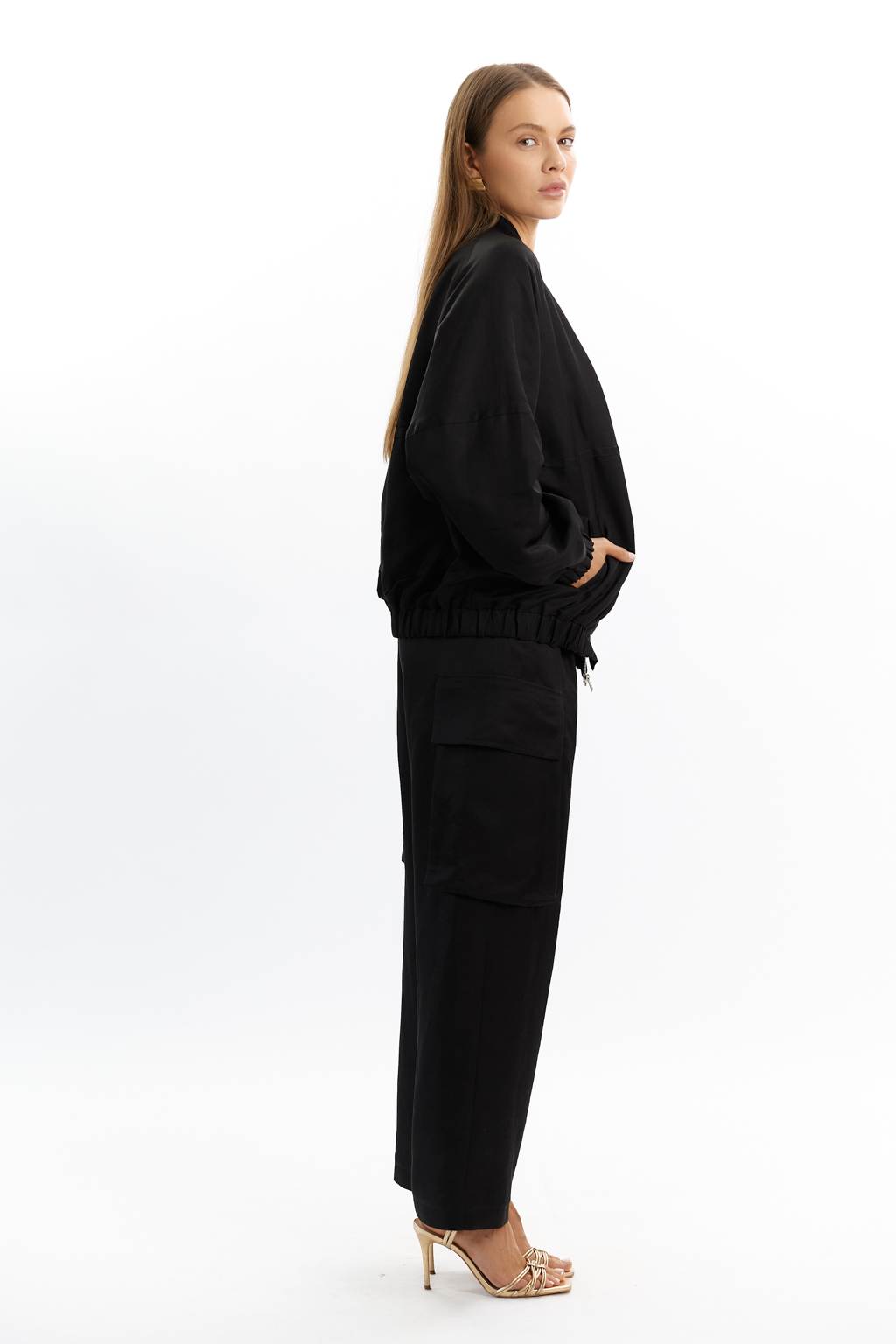 PREMIUM QUALITY TREND   Костюмный легкий вискозный лен с добавлением шелка классического черного цвета