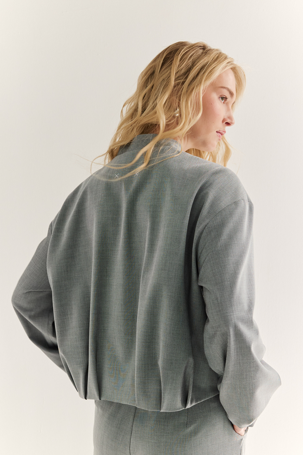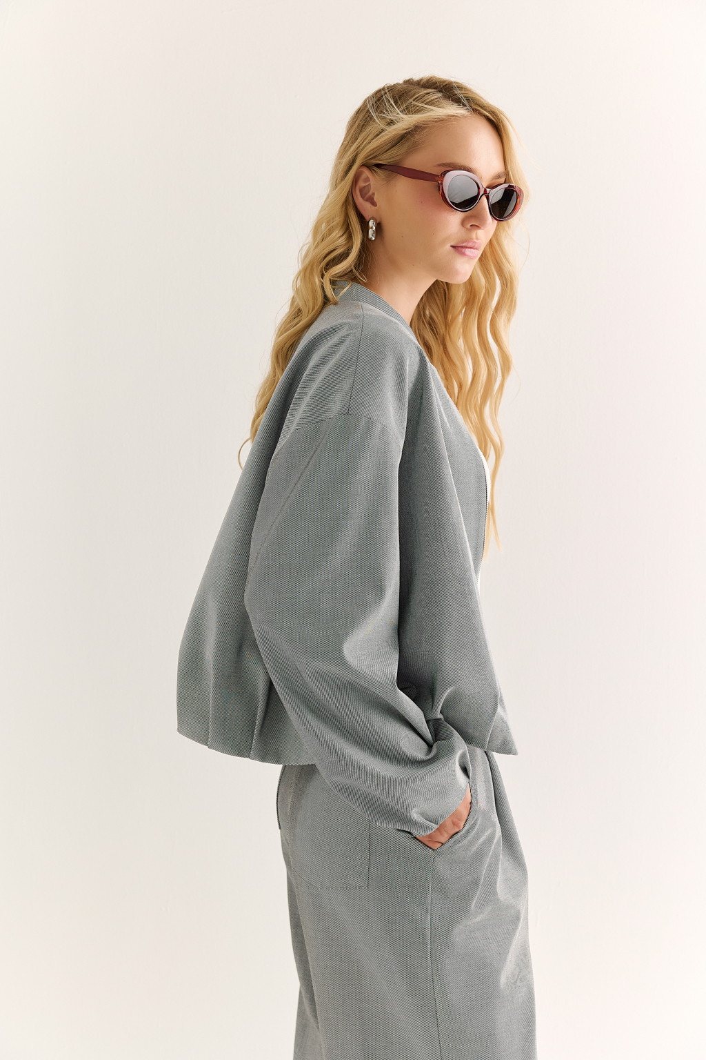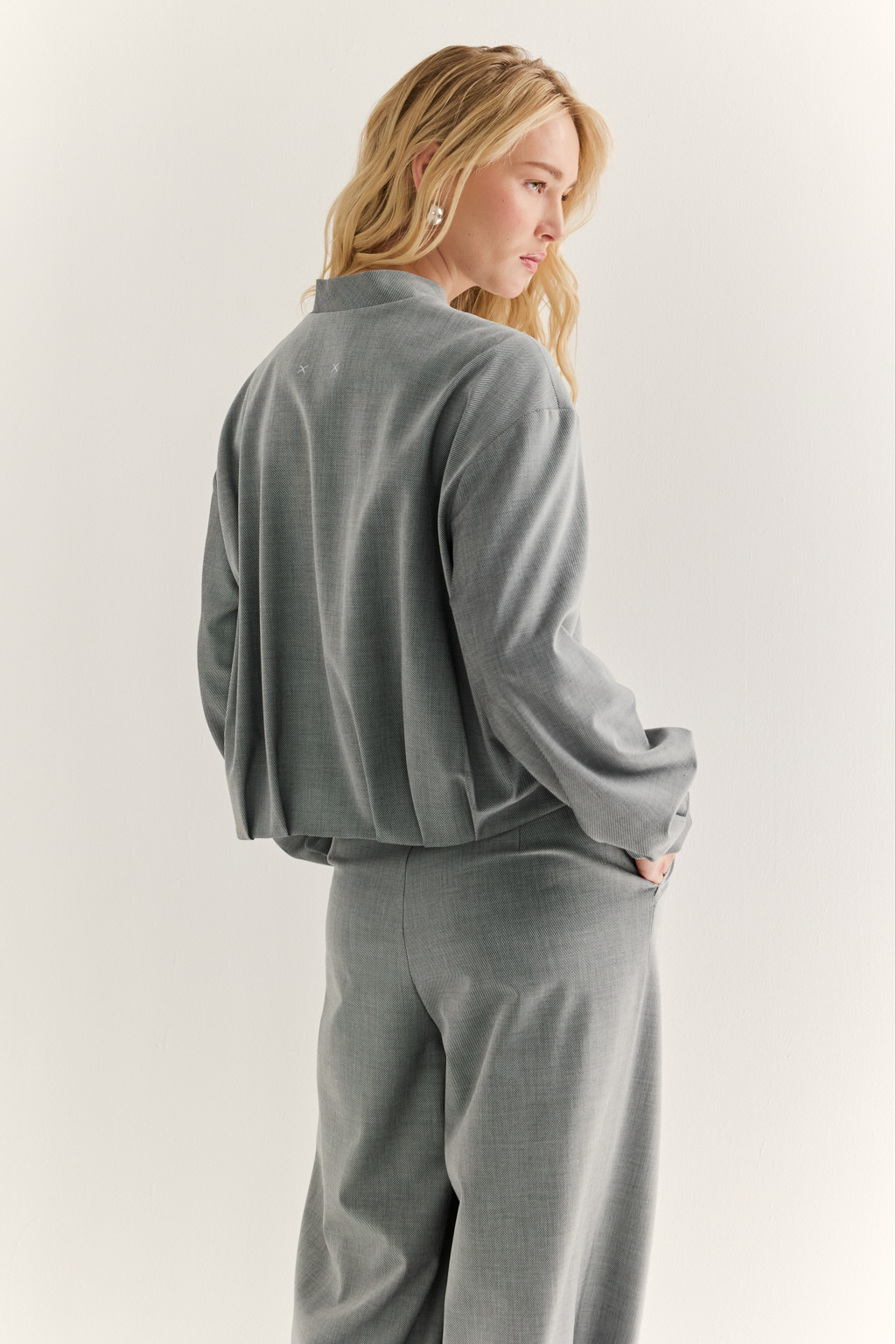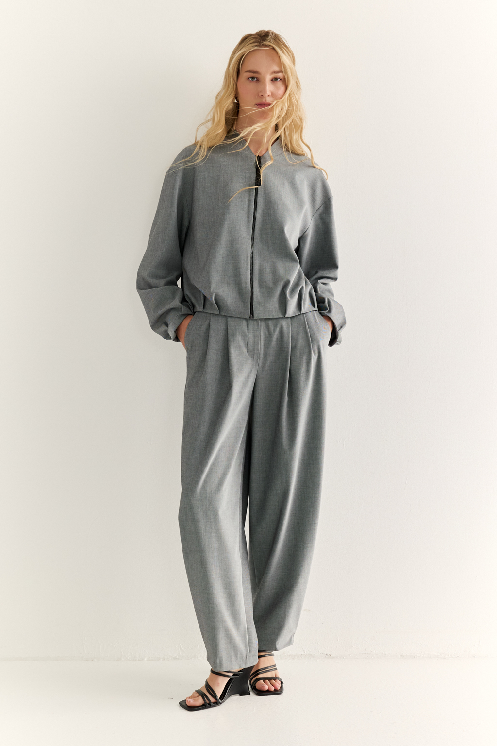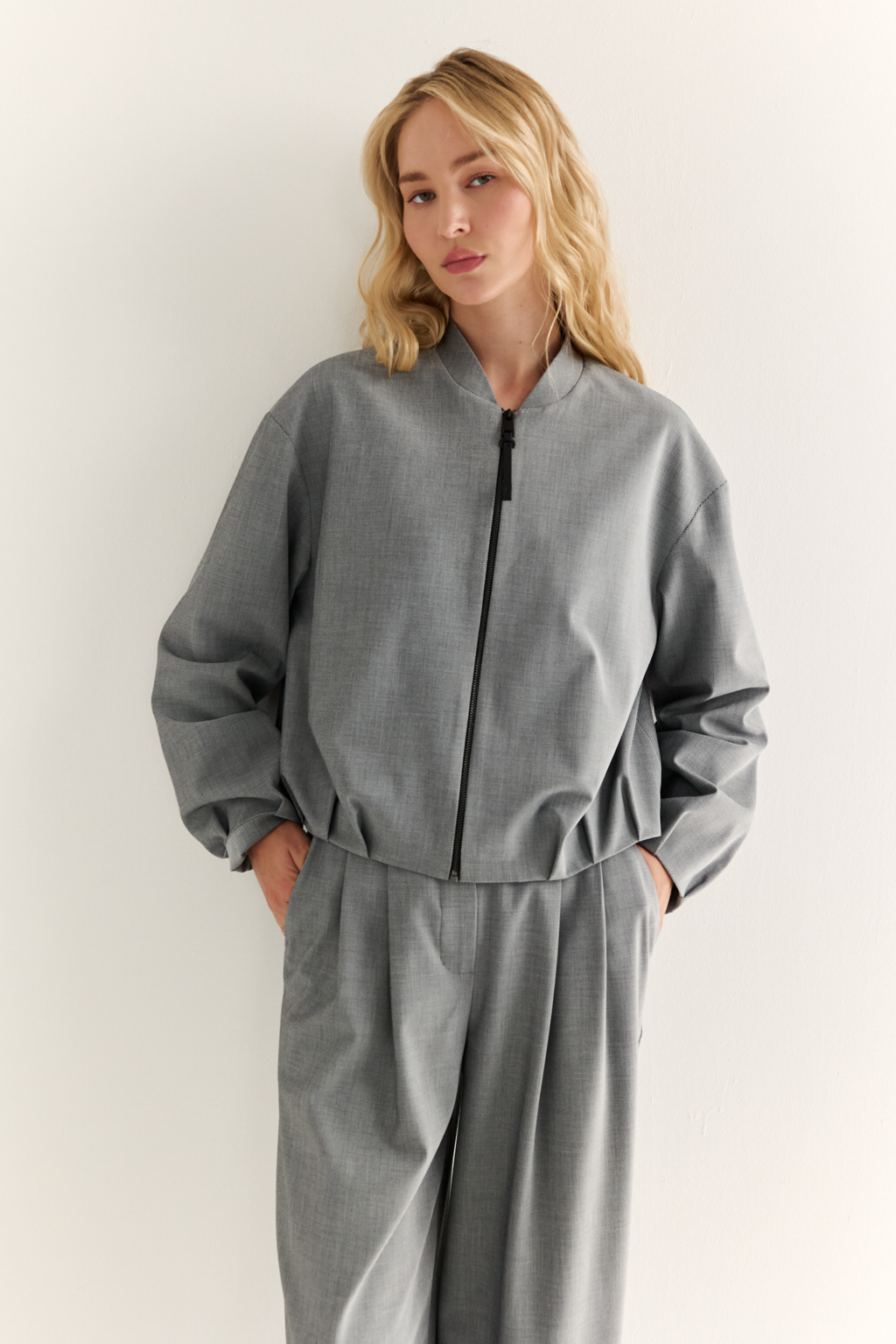 Бомбер: свобода формы и движение стиля Объёмный бомбер со складками по низу изделия и рукавам — стильный гибрид классики и спортивного кроя. Свободная посадка, застёжка на молнию и мягкий воротник-стойка превращают эту модель в ключевой элемент расслабленного, но выразительного гардероба. Собранный низ подчеркивает линию талии и добавляет динамики, создавая модный силуэт без усилий. Носите с джоггерами, прямыми брюками или юбкой — в любом сочетании бомбер остаётся акцентным и современным. Для тех, кто выбирает комфорт, но не отказывается от характера.