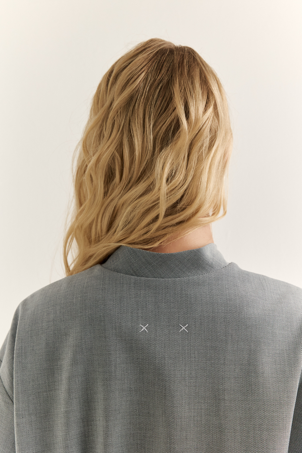 NEW TREND PREMIUM QUALITY Костюмная ткань твиллового переплетения серого цвета  Вышивка "Крестики"