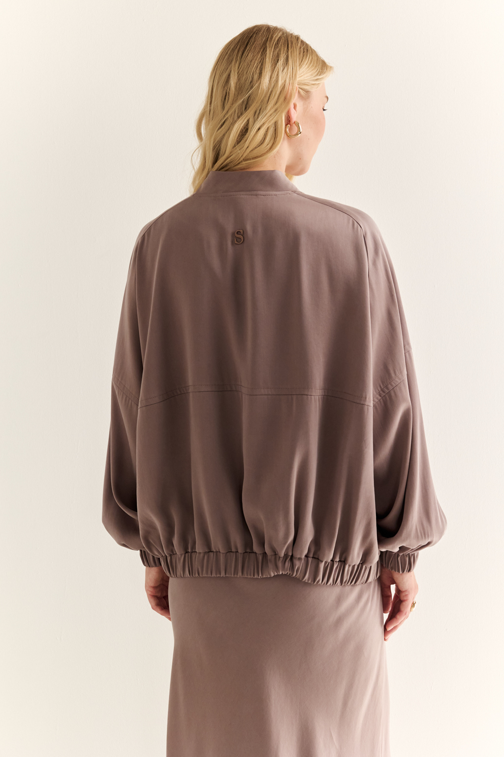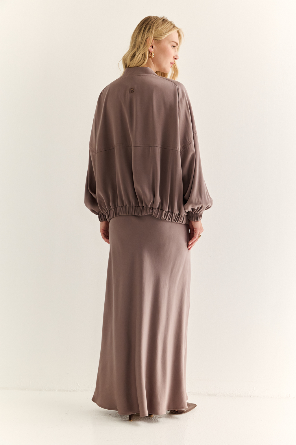 NEW TREND PREMIUM QUALITY Плательная ткань с лиоцеллом цвета мокко со стиранным эффектом Вышивка "S"